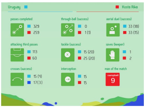Hal ini menunjukan bagaimana serangan Kosta Rika lebih efektif ketimbang yang dilakukan Uruguay.